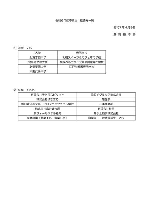 今回の研修は遠別町様から助成を受けて実施することができました。本当にありがとうございました。今回の研修を通して、今後の学校生活での更なる飛躍を期待しています。
