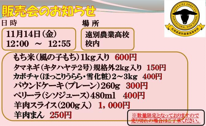 9月13日(土)に札幌さとらんどで行われた「食の学校祭」に3年生1名と、畜産分会の2年生3名が参加してきました。