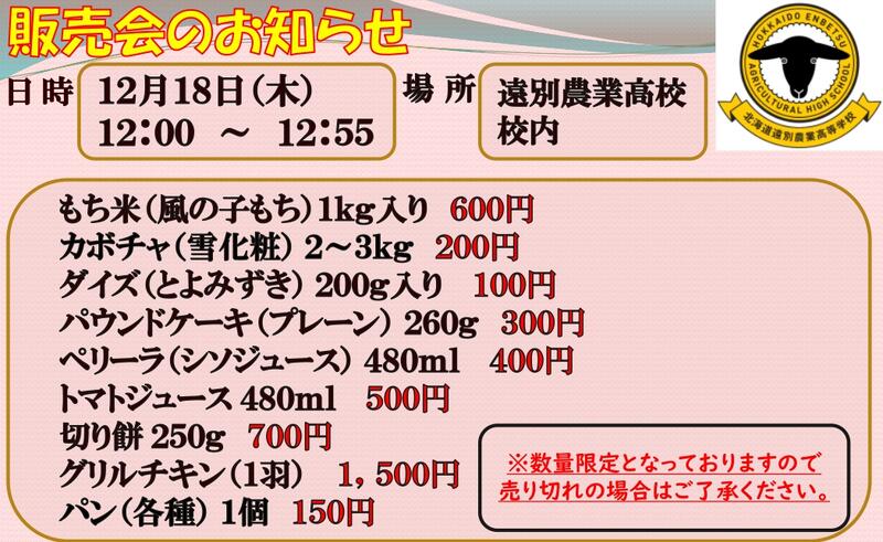 次回の販売会は12月18日(木)です。詳細は改めてHPでご案内いたします。