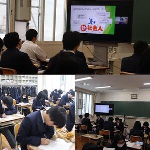 12月11日(木)社会人になるための知識習得を目的として、留萌教育局進路相談員齋藤利佳様を講師としてお招きし、3年生対象の進路講話をオンラインで実施しました。当日はビジネスコミュニケーションや就業規則等の講話、生徒同士による電話応対のロールプレイング、キャリアプランシートの作成を行いました。