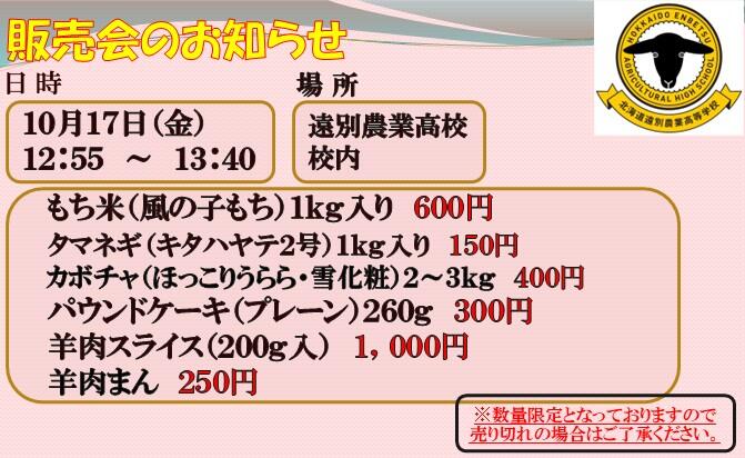 9月13日(土)に札幌さとらんどで行われた「食の学校祭」に3年生1名と、畜産分会の2年生3名が参加してきました。