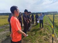「今回のバスツアーを通して遠農と農家さんの水田を比較して品種は違うけれど園芸分会で進めている湛水直播の事について質問して農家さん曰く留萌管内で直播を進めるならカルパーコーティングをしてできるだけ種子を重くした方が土に入ってもらえるし、鳥に食べられにくいと仰っていたり、代かきについてたくさん教えていただきました。」