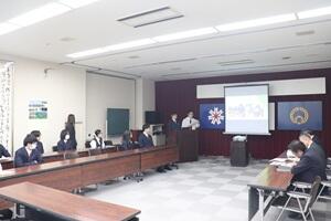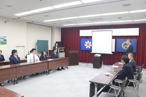 10月7日(火)遠別町役場で、7月24日(木)~7月28日(月)の4泊5日の日程で実施された海外農業視察研修に参加した3年生11名が報告会を行いました。当日は、國部町長、土井教育長、緒方教育次長の3名に出席していただき、生徒は日本と韓国の文化や生活の違いや農業施設を見学して学んだことを報告しました。報告が終わった後、町長や教育長からの質問では、ハキハキと答えていました。