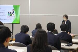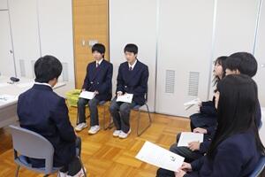 11月28日(金)進路選択や面接礼法について学び今後の進路活動に活かすことを目的とし、留萌教育局進路相談員の齋藤利佳様を講師としてお招きして進路ガイダンスを実施しました。当日は前半に「進路選択で必要なこと」をテーマとした講話、後半はグループを作って模擬面接を行いました。