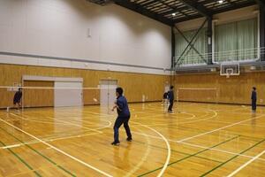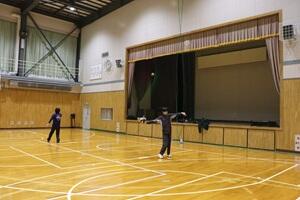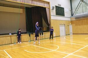 合同トレーニング後はそれぞれの活動に戻り、陸上競技部はボールを使った投擲の動きづくり、バドミントン部は基礎練習を行っていました。